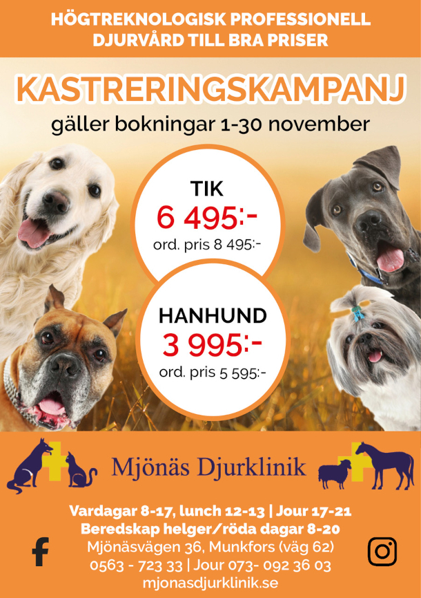 - 50 % rabatt på vaccinationer (dock inte Rabies, Botulism, Herpes och Leptospiros)